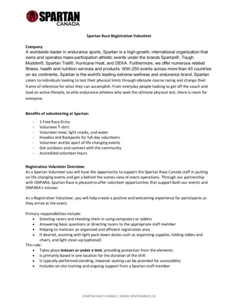Volunteer Opportunity- Registration